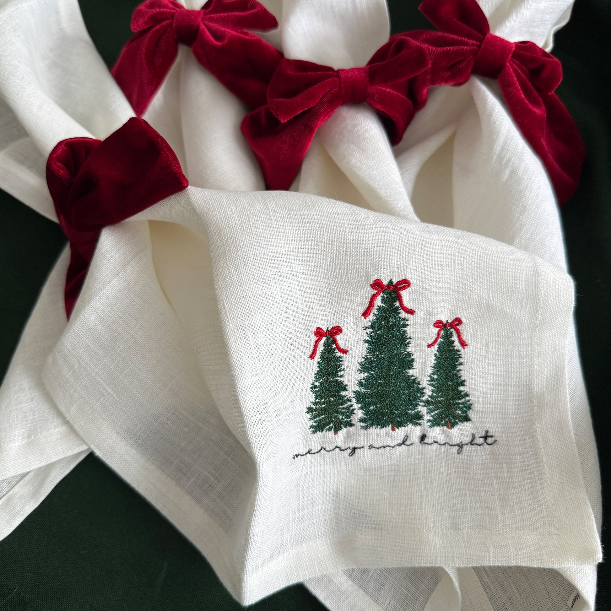 Set aus 4 bestickten Stoffservietten. Motiv "Merry and bright".