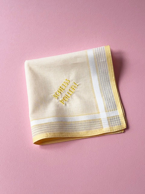Besticktes Taschentuch „Scheiss Pollen“ – Gelbes Stofftaschentuch mit humorvollem Spruch