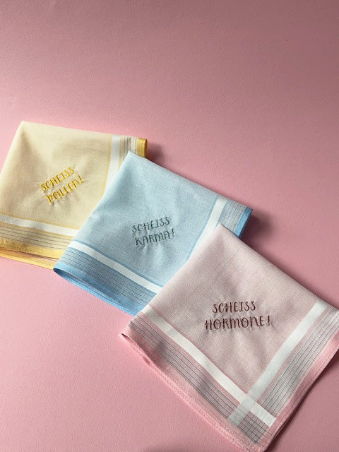 Nicht nur Pollen können nerven 😉: Schau dir auch unsere Taschentücher „Scheiss Hormone“ und „Scheiss Karma“ an.