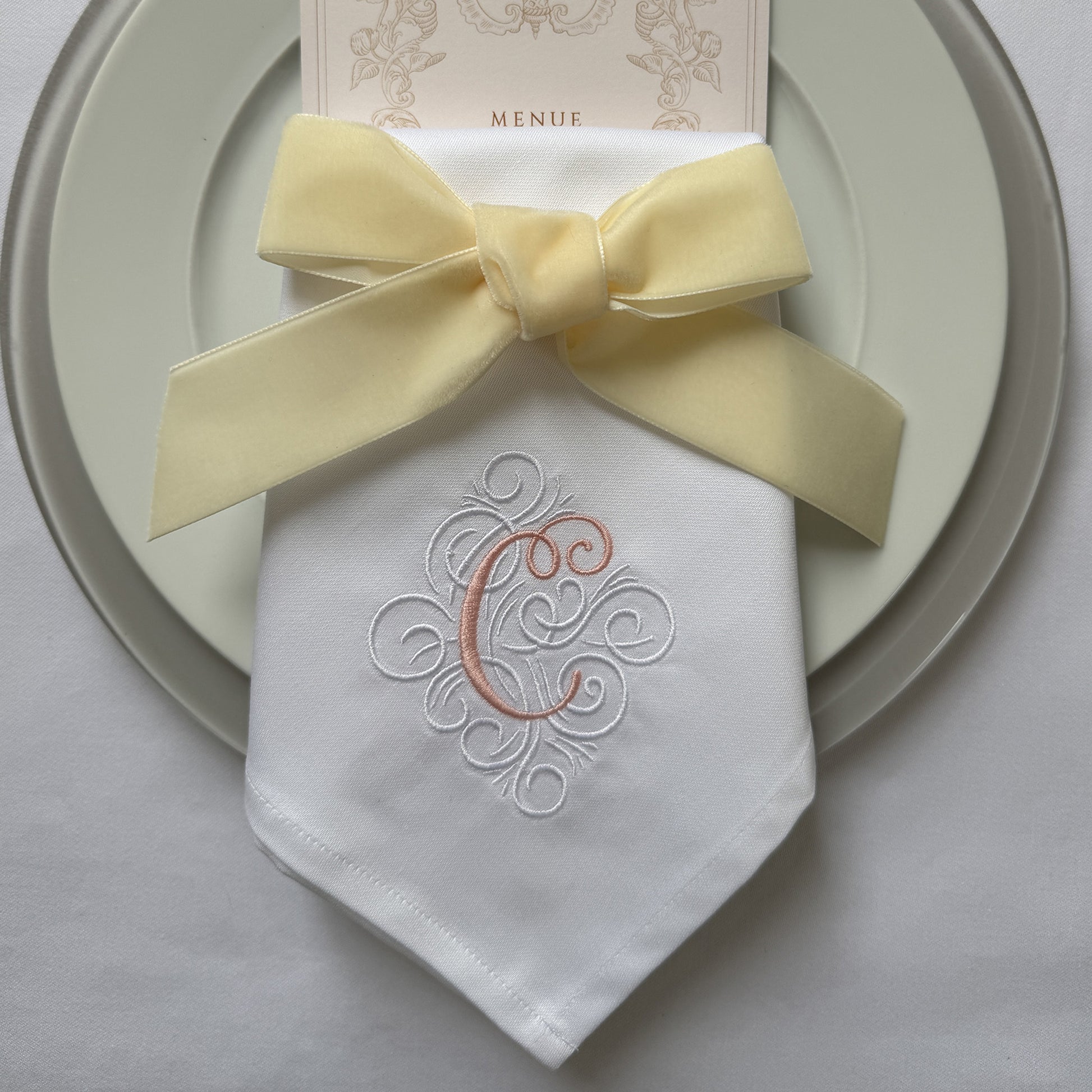 Verleihe deinem besonderen Anlass eine persönliche Note — mit „Blush", der hochwertigen bestickten Serviette. Perfekt für Hochzeiten, Jubiläen oder festliche Events.
