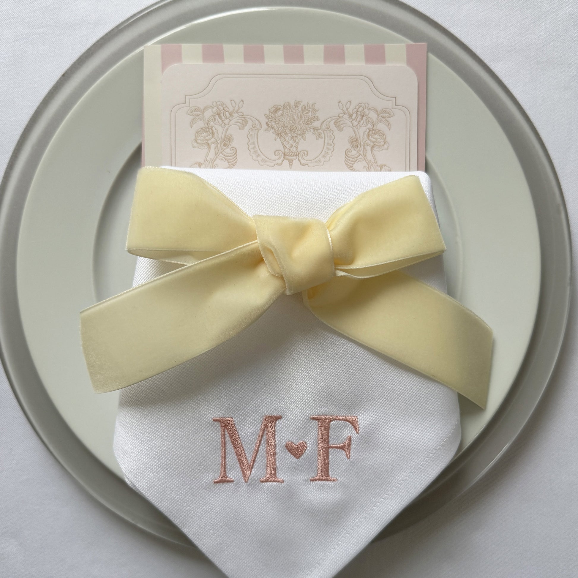 Verleihe deinem besonderen Anlass eine persönliche Note — mit „Classic", der hochwertigen bestickten Serviette. Perfekt für Hochzeiten, Jubiläen oder festliche Events.
